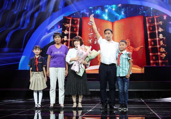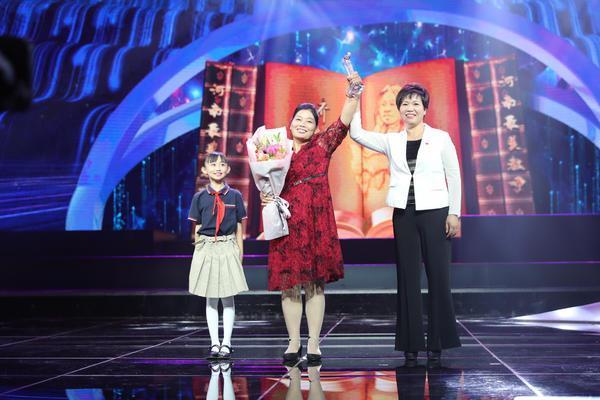 當李芳老師的愛人與女兒走上舞臺時,臺下爆發出熱烈的掌聲;被李芳老師救下的四名學生為他們獻上鮮花,并將獎杯放在花團錦簇的領獎臺上,舞臺上,孩子們朝著空空的領獎臺深深地鞠躬,舞臺下,觀眾們的眼淚在眼眶中轉了又轉。