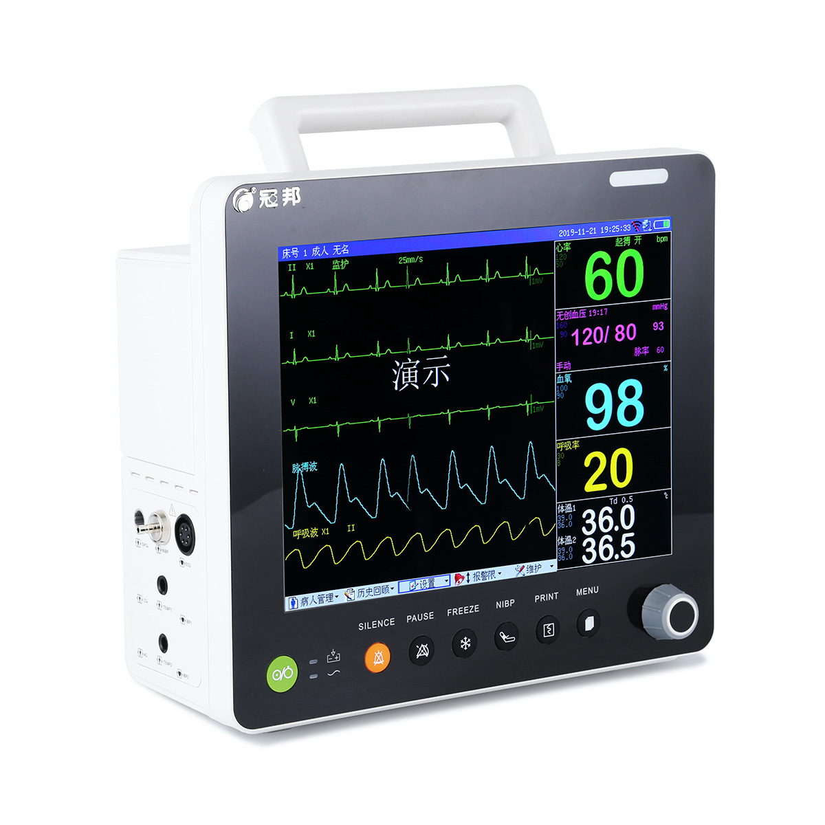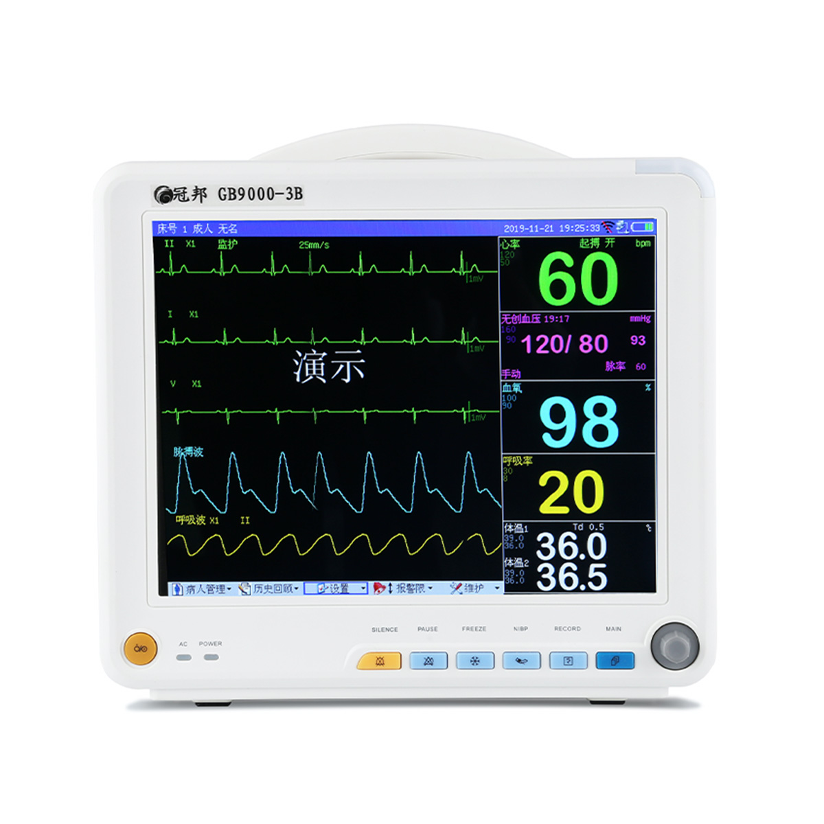 多參數(shù)監(jiān)護儀能為醫(yī)學臨床診斷提供重要的病人信息,通過各種功能模塊,可實時檢測人體的心電信號、心率、血氧飽和度、血壓、呼吸頻率和體溫等重要參數(shù),實現(xiàn)對各參數(shù)的監(jiān)督報警。信息存儲和傳輸,是一種監(jiān)護病人的重要設(shè)備。GB9000-3A多參數(shù)監(jiān)護儀適用于兒童和成人監(jiān)護,可監(jiān)測參數(shù):心電、血氧飽和度、無創(chuàng)血壓、呼吸、體溫。